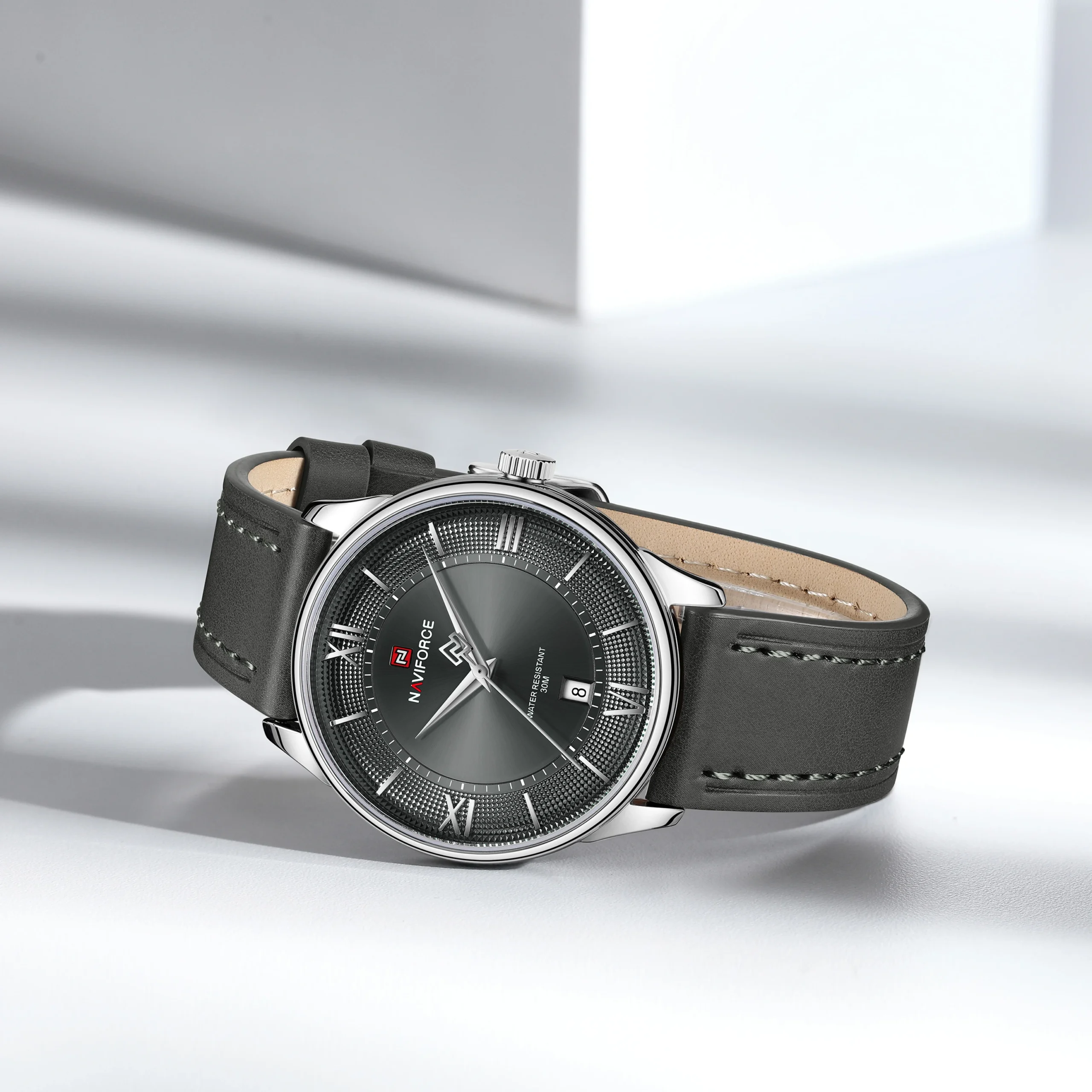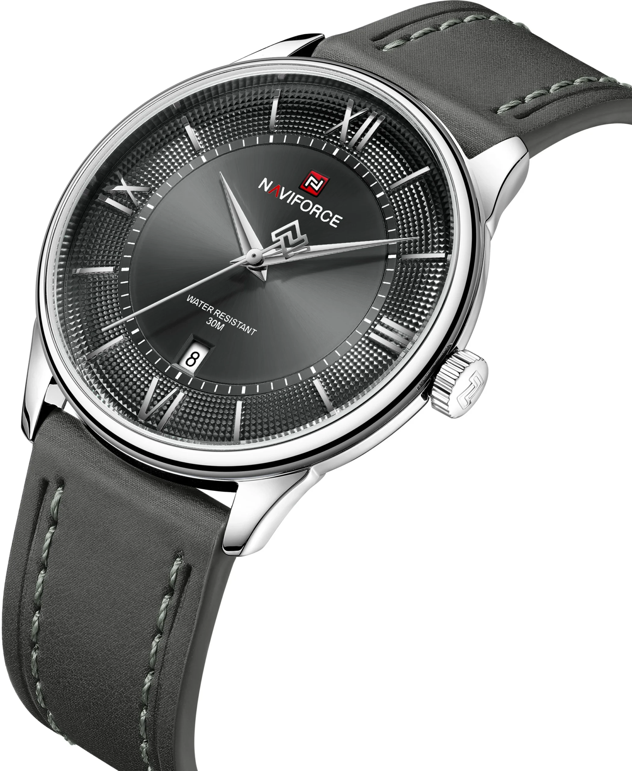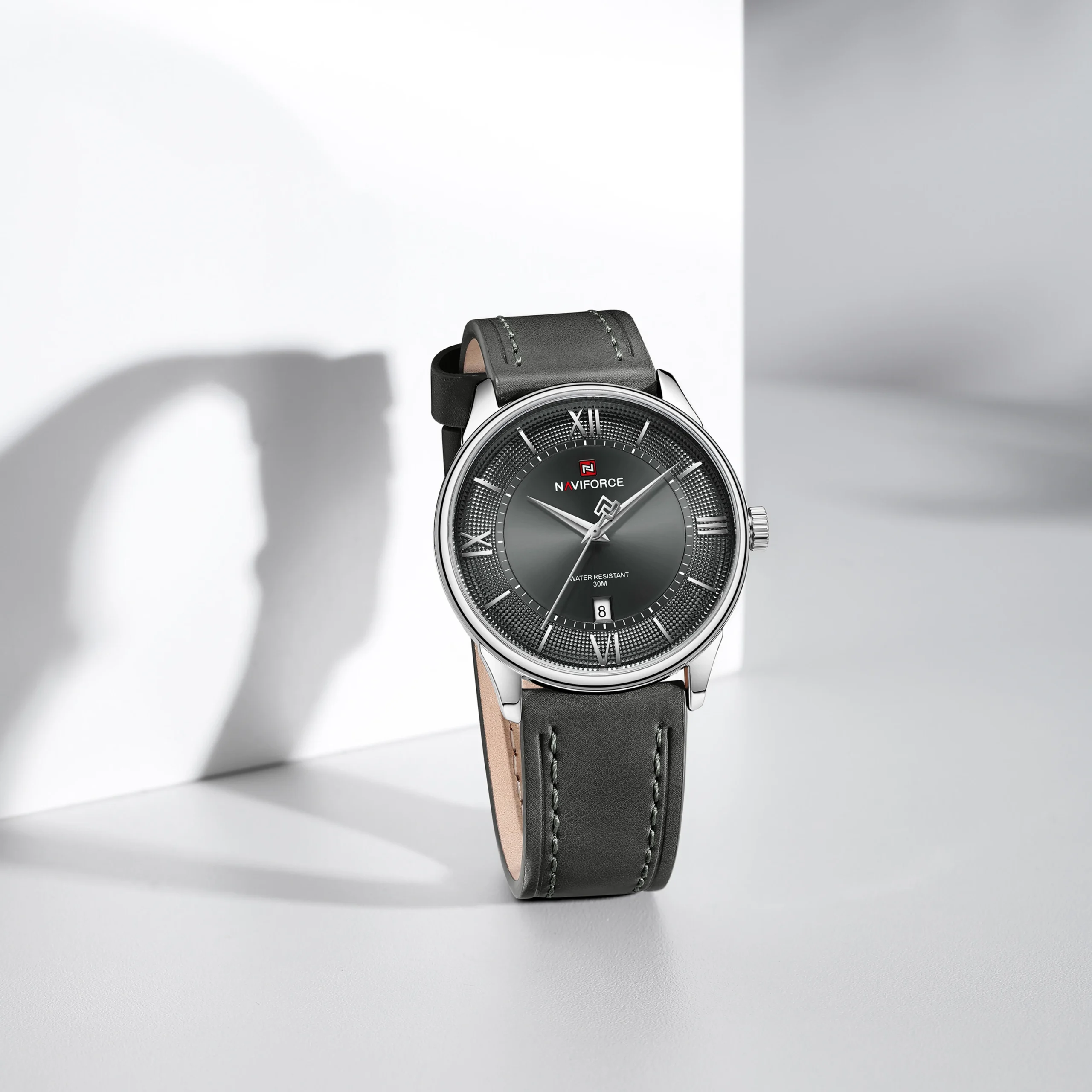 Naviforce NF9272L S/GY/GY Grey Men’s Waterproof Official Genuine Leather Strap Watch